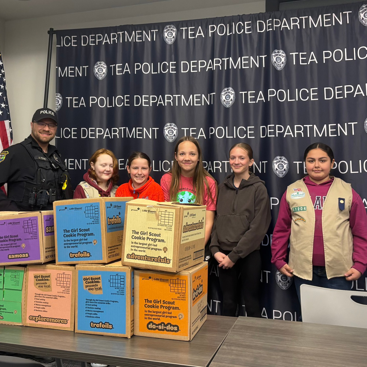 Following their visit, Troop 41204 gave back in a sweet way through the Heroes on the Horizons program, donating a variety of Girl Scout Cookies to the department. Their thoughtful gesture was a meaningful way to say thank you and show appreciation for the work officers do every day.